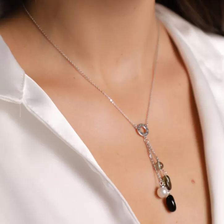 Hot Majorica Algaida Silver Short Necklace With Black Murano Glass